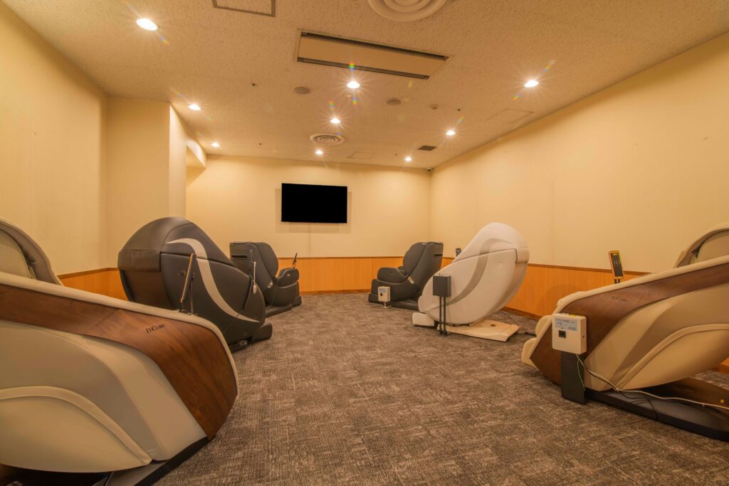ドライゾーン(お休み処)には、ごろ寝スペースやリクライナーチェアスペースがあり、温泉やサウナで温まった体を、やさしく休める時間をお過ごしいただけます。