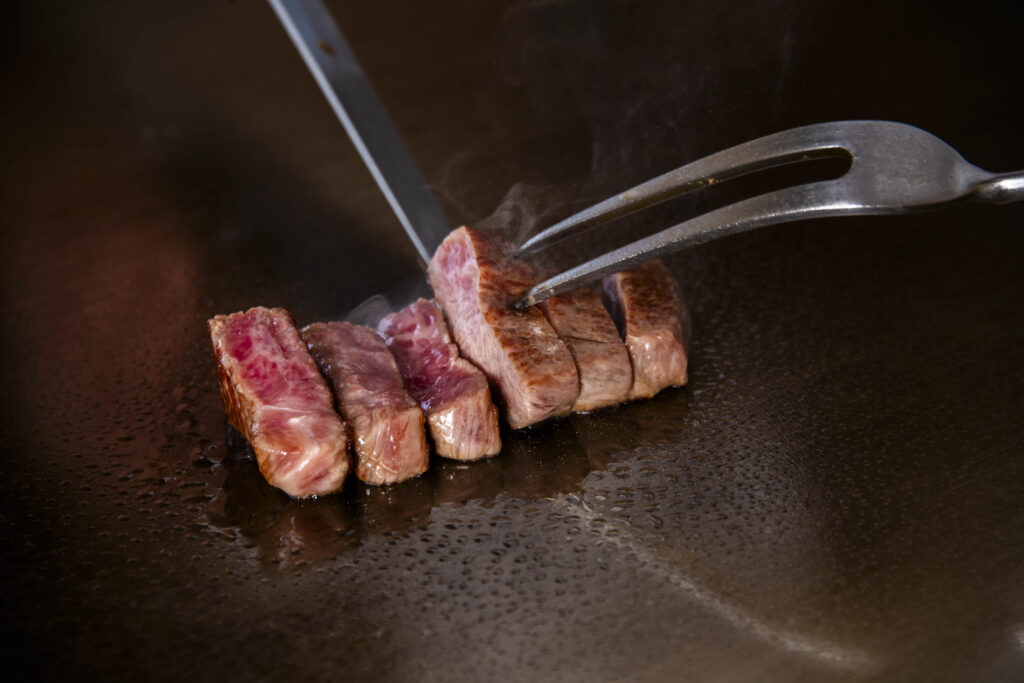 全席、鉄板を囲むブース席となっており、目の前でシェフが調理する様子を見ることができ、音や香りとともに料理が仕上がっていく臨場感も魅力のひとつ。
