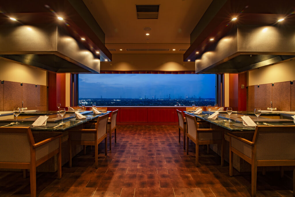 ホテル最上階に位置しており、神栖市内を一望できる眺望とともに、落ち着いた雰囲気の中で特別なお食事を楽しむことができます。