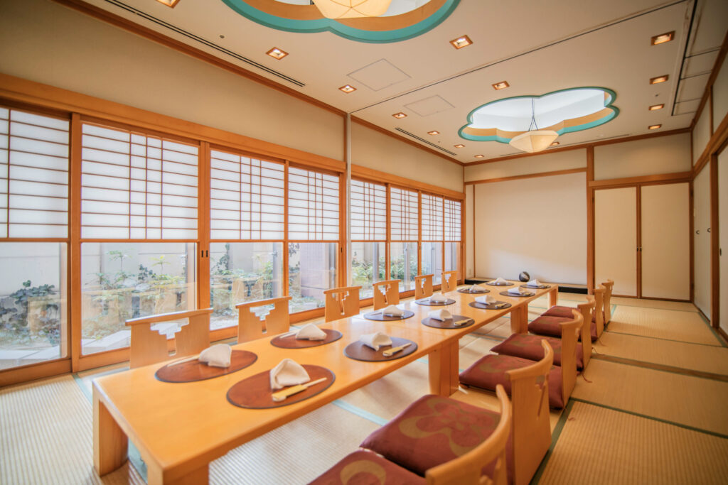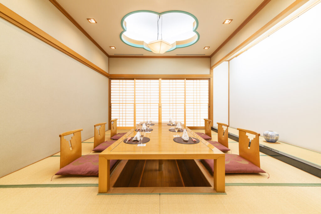 店内には、落ち着いた和の空間に個室も完備しており、ご接待やご会食はもちろん、お顔合わせや七五三などご家族のお祝いの席にもご利用いただけます。