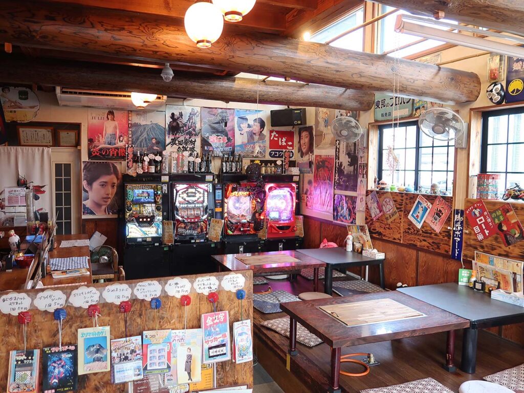 パチンコ台やカラオケ、テレビゲームなども設置されており、食事だけでなく遊びながら過ごせるのも魅力です。