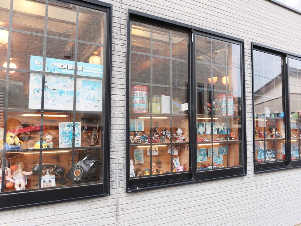 店内には、当時を思わせる看板やポスター、おもちゃがずらりと並び、まるで昭和にタイムスリップしたかのようです。