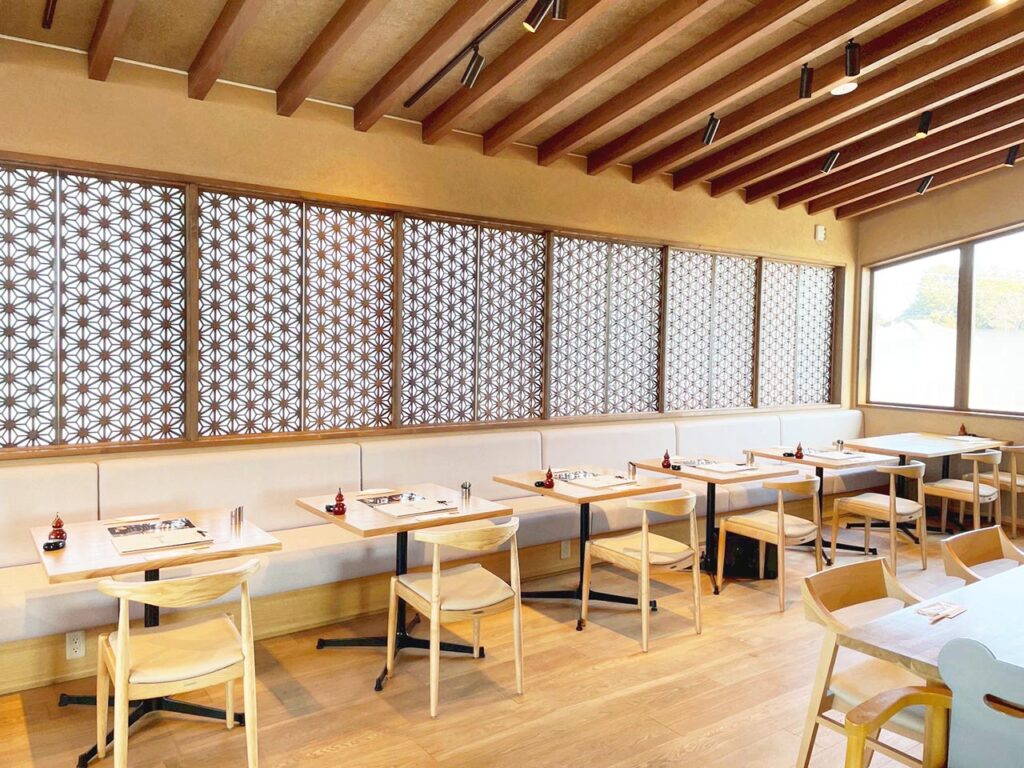 店内には神栖市の伝統工芸「組子細工」風の装飾が施され、あたたかな雰囲気を演出。