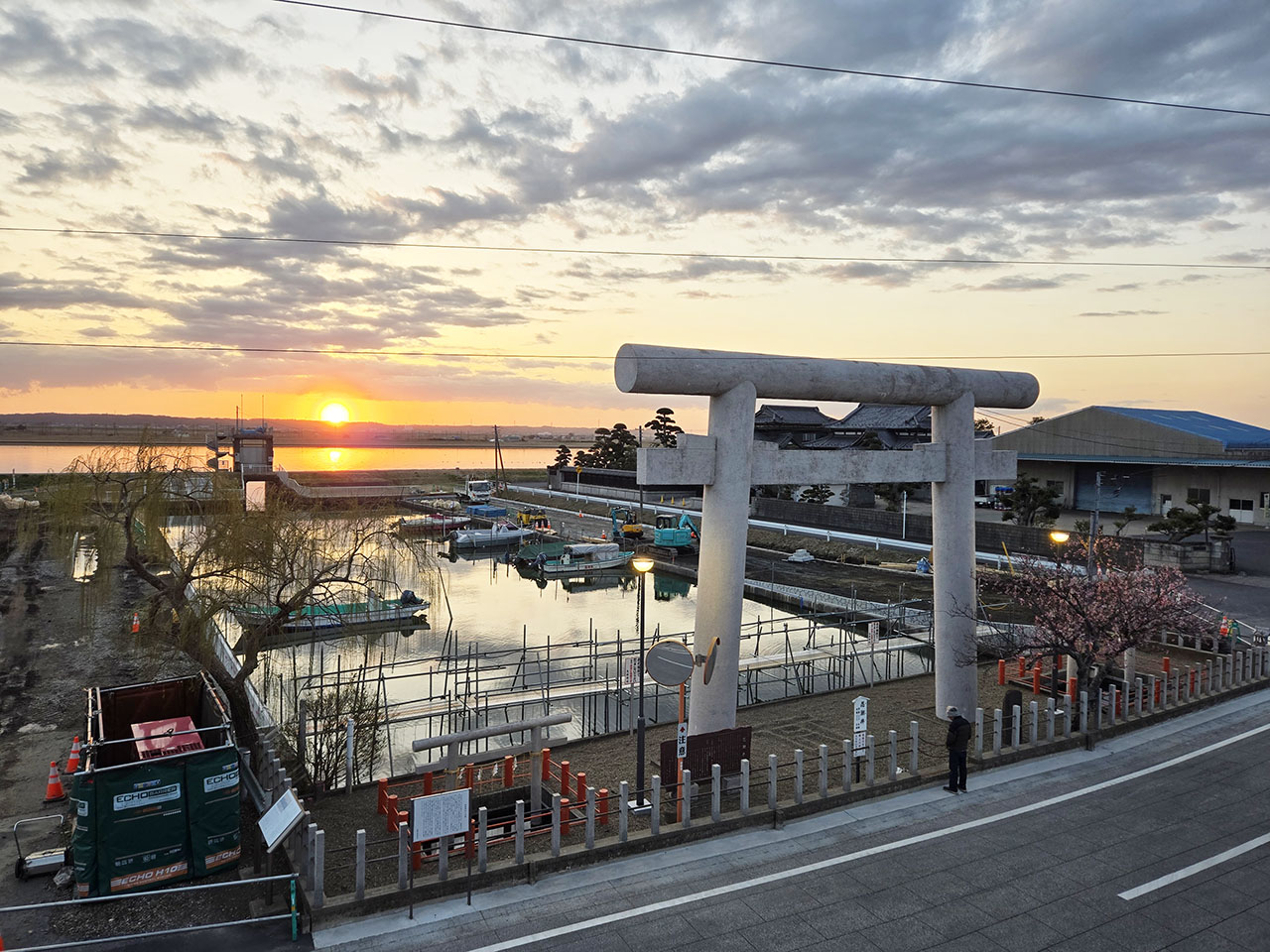 窓の外には息栖神社の鳥居や常陸利根川の景色が広がり、時間帯によって表情を変える風景も大きな魅力です。