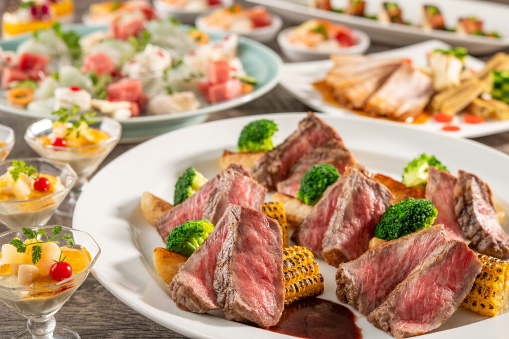 ホテル内には和食・洋食・中華・鉄板焼など多彩な飲食店がそろっており、滞在中のお食事も充実しています。