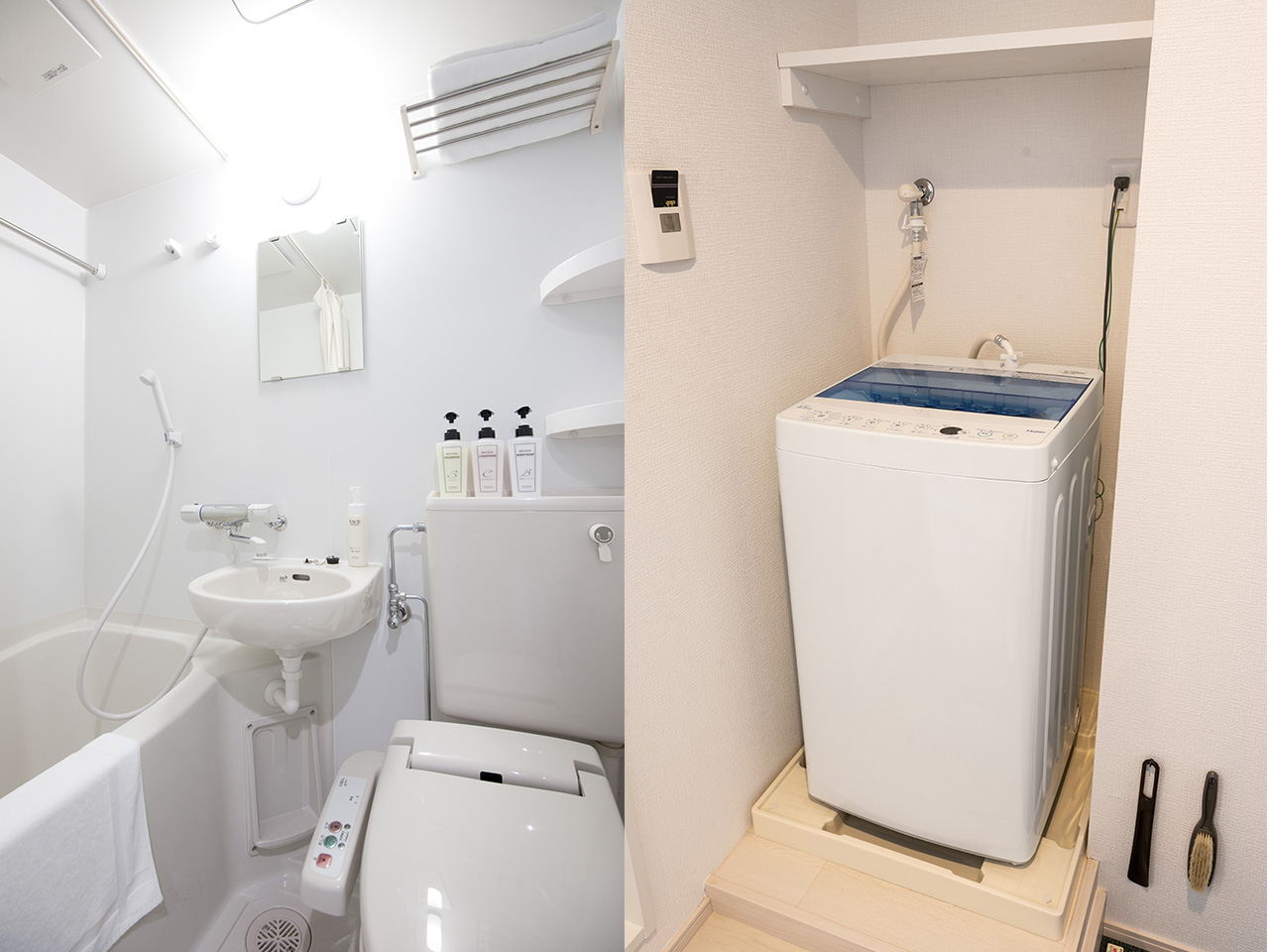 全客室に洗濯機・電子レンジ・冷蔵庫・電気ケトルなどの生活家電を完備しているのが大きな特長。