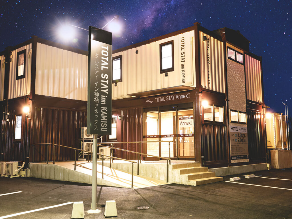 トータルステイイン神栖は、建築用コンテナを活用して造られた、機能性と快適性を兼ね備えたホテルです。